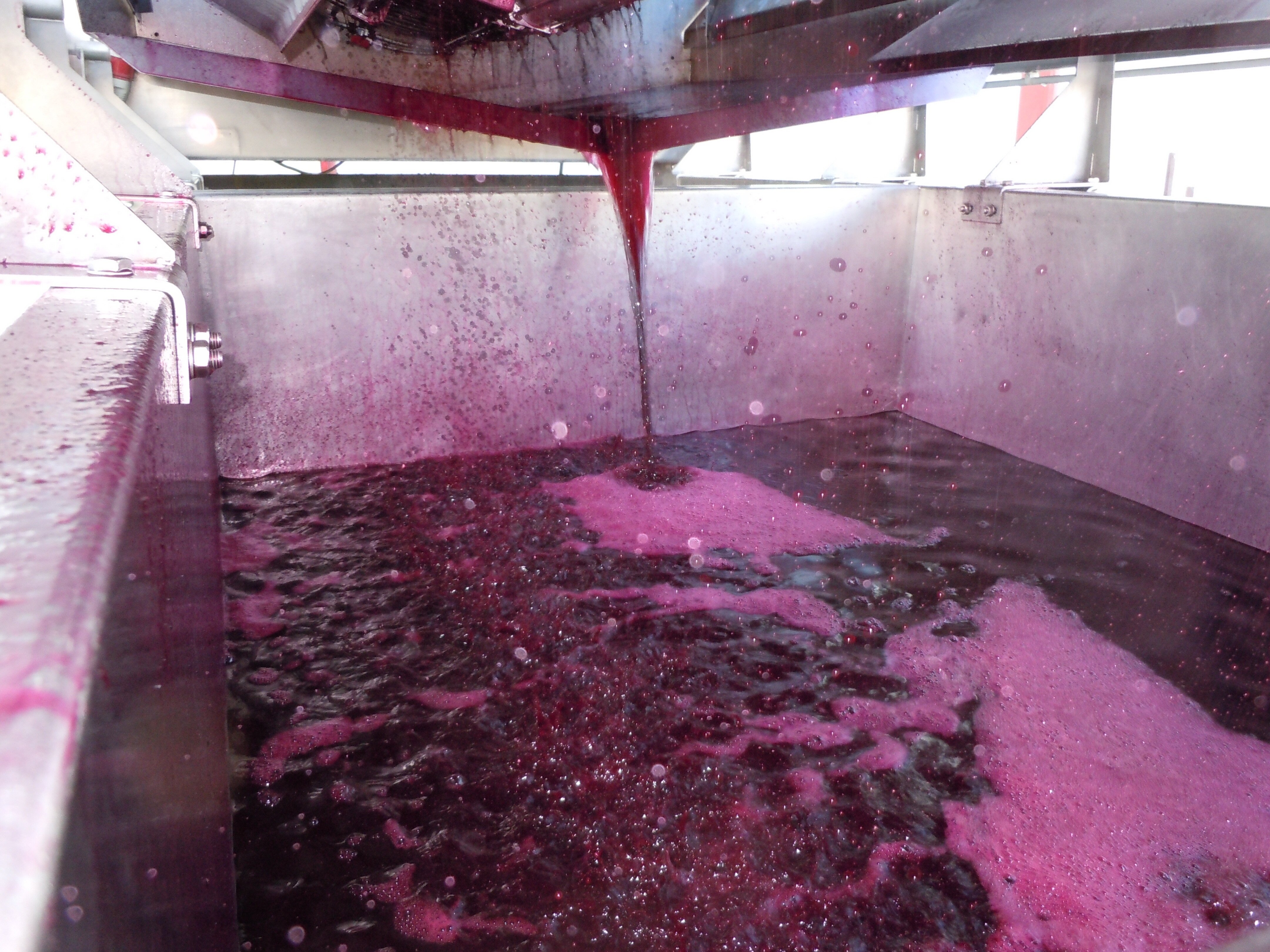 Beautiful, aromatic Syrah juice in the Crusher