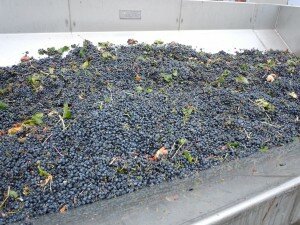 Merlot Grapes in the bin at Hyatt Vineyards Winery in preparation for the CRuSH